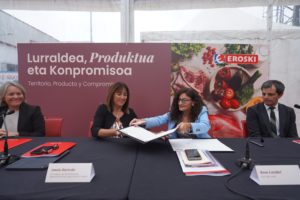 Así lo ha asegurado la consejera de Alimentación, Desarrollo Rural, Pesca y Agricultura del Gobierno Vasco Amaia Barredo durante el acto de firma del convenio: “EROSKI es un agente tractor clave en la cadena de valor de la alimentación en Euskadi. Su compromiso con la comercialización de productos locales y sostenibles contribuye de forma decisiva al desarrollo económico del sector agroalimentario y a la valorización de nuestros productores”.